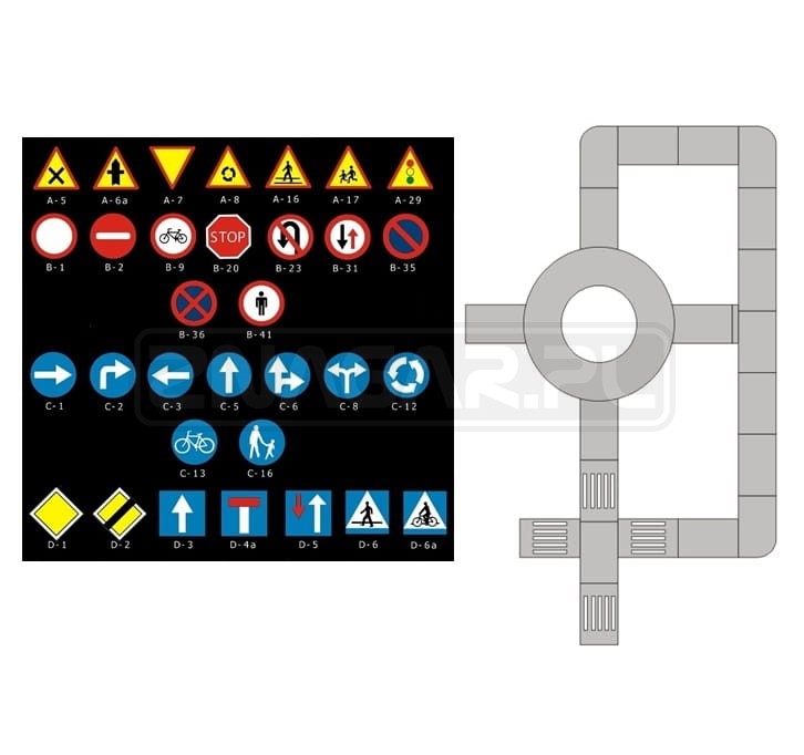 Miasteczko rowerowe 11x17 m - komplet mat i 32 mini znaków