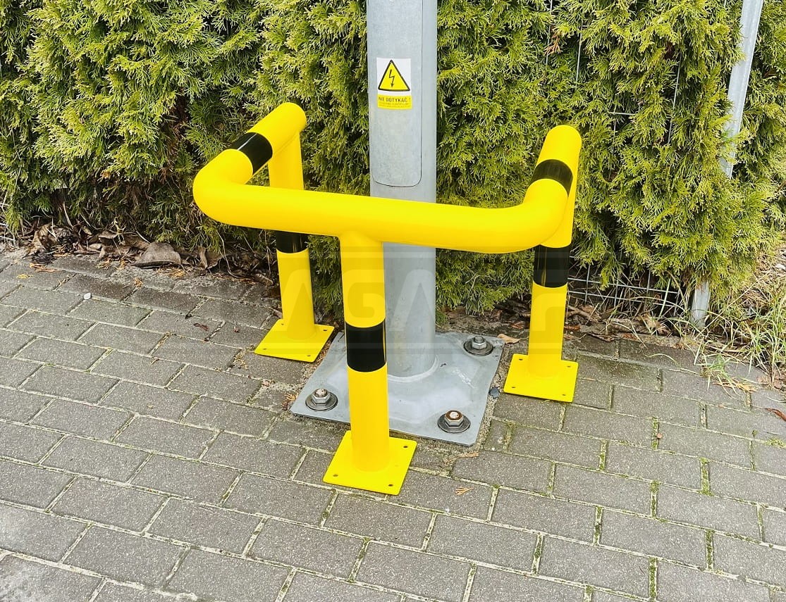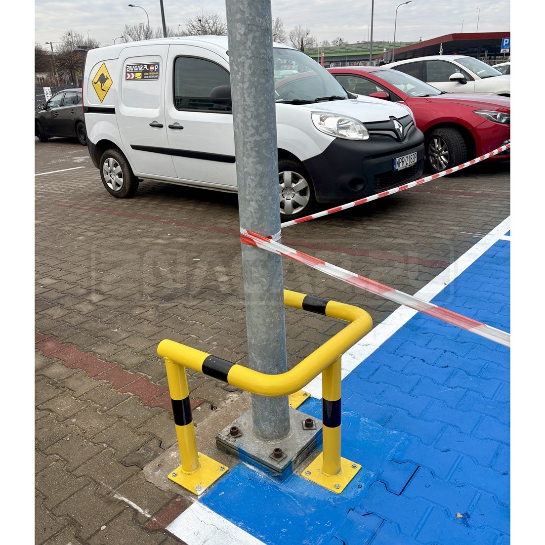 Odbojnica latarni wykonana jest ze stalowej konstrukcji i lakierowana proszkowo co daje jej wysoką trwałość i estetykę. Produkt zapewnia ochronę przed uszkodzeniami mechanicznymi oraz zwiększa widoczność obiektu latarni lub innej przeszkody. Odbojnice latarni popularne są na parkingach sklepowych, gdzie intensywnie użytkowane przestrzenie parkingowe wokół punktów sprzedaży stwarzają ryzyko uszkodzenia latarni, biletomatów i innych obiektów infrastruktury. Zastosowanie odbojnicy latarni redukuje koszty napraw i utrzymania. Produkt dzięki solidnej konstrukcji i estetycznemu wykończeniu doskonale wpisuje się w miejskie i handlowe otoczenie, łącząc funkcjonalność z atrakcyjnym wyglądem.