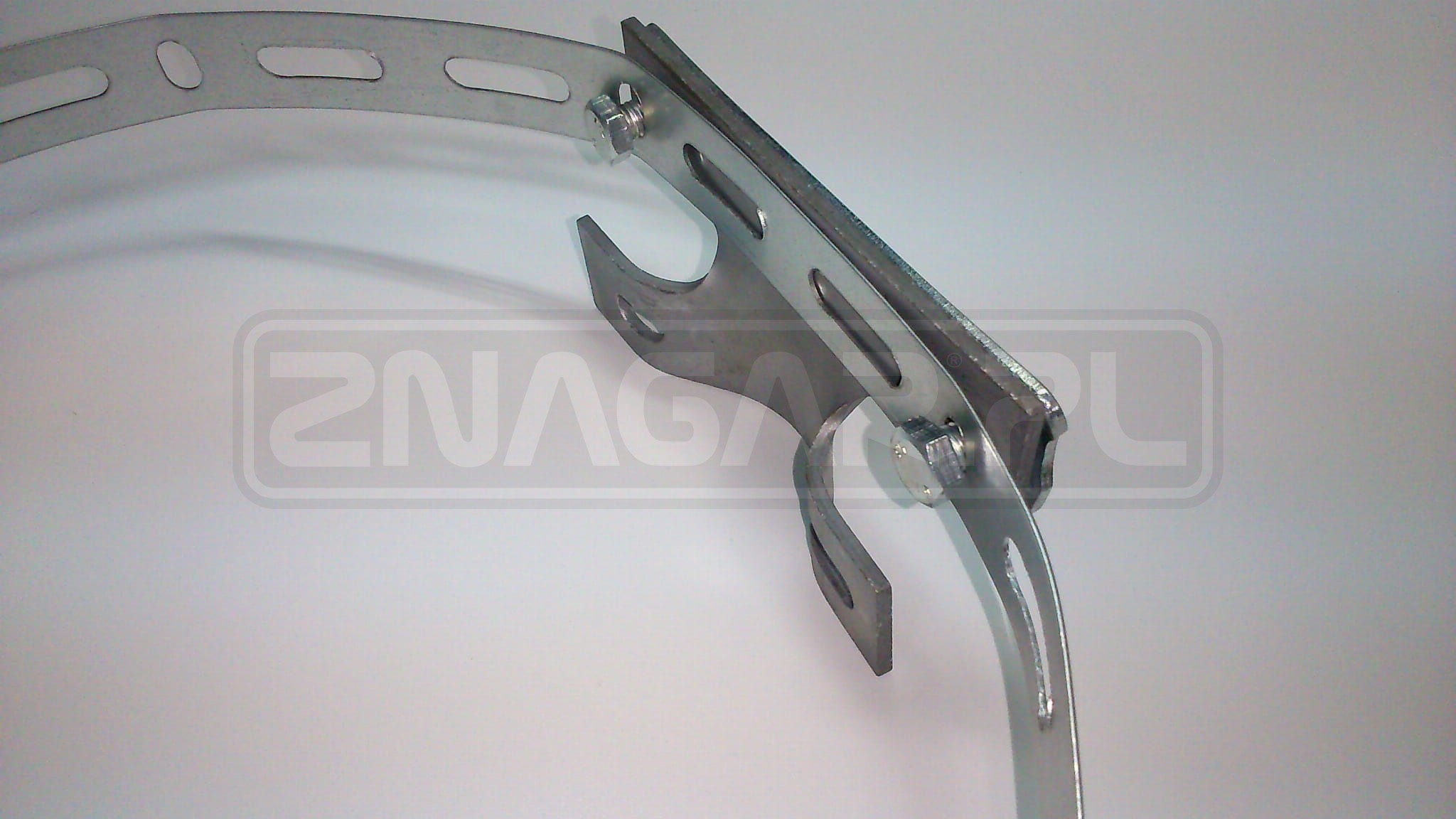 Opaska montażowa, służy do mocowania tarcz znaków i tablic na słupach, latarniach o większej średnicy niż standardowy słupek drogowy.