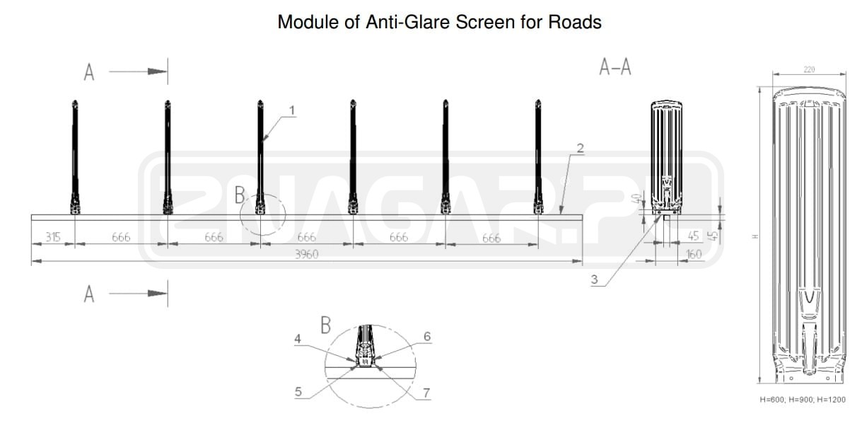 Panel przeciw olśnieniowy U-19 - wysokość 90 cm