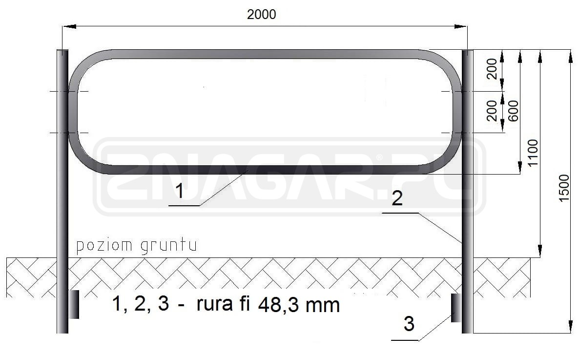 Bariera U-12a typ Olsztyński - 2000mm, ocynkowana