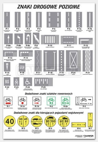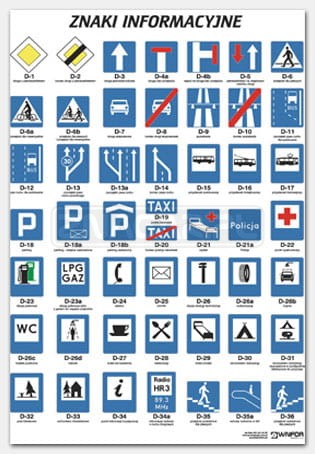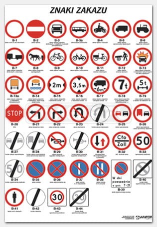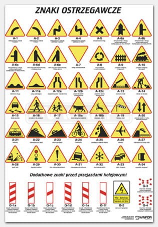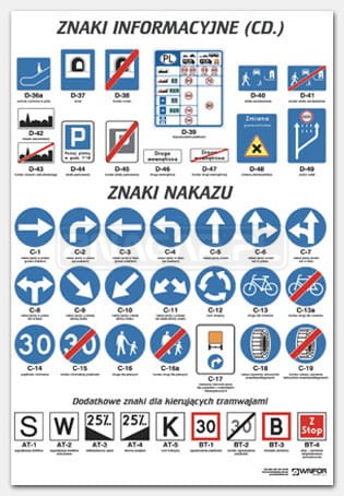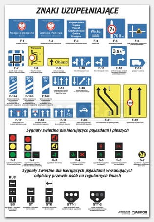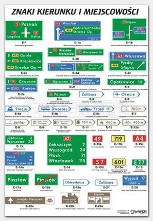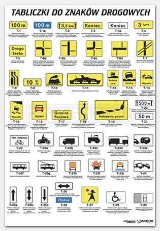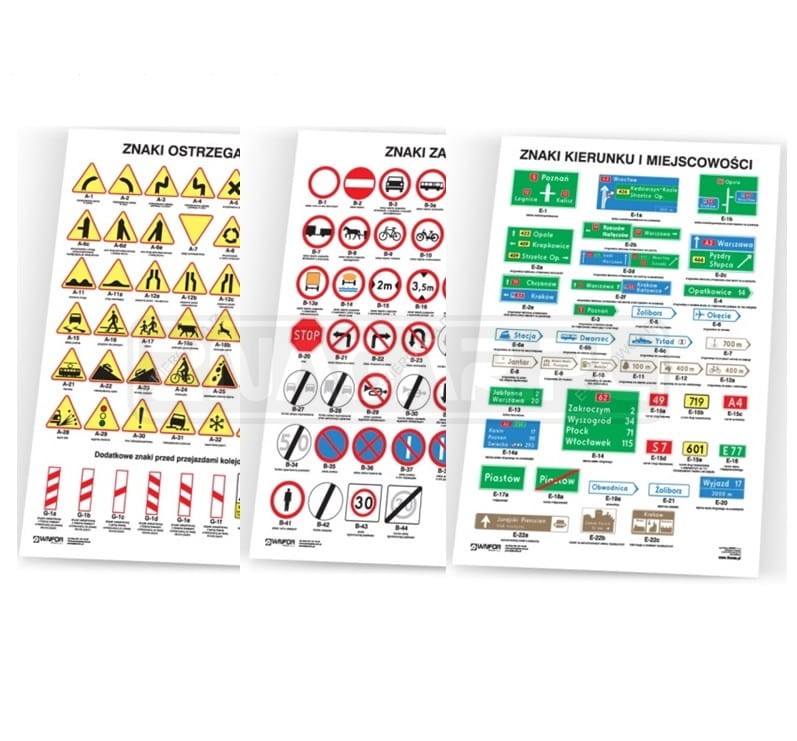 Zestaw 8 szt. plansz edukacyjnych ze znakami i tablicami drogowymi.
