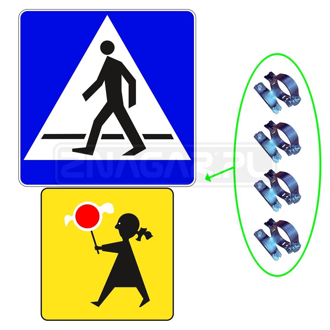 D-6 przejście dla pieszych 600x600 mm, tabliczka T-27 uwaga dzieci "Agatka", 4x uchwyt - odblask typ2
