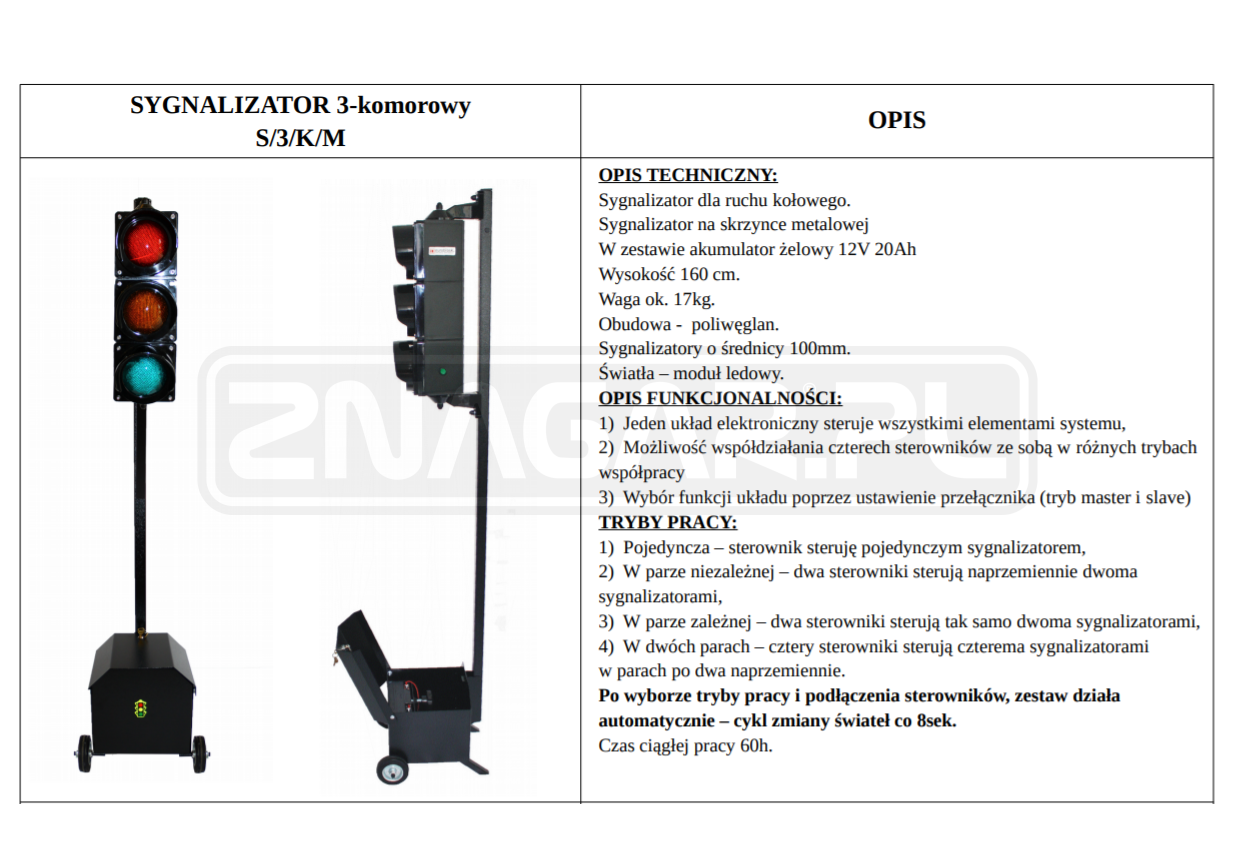 - sygnalizator działa automatycznie w sposób zsynchronizowany w grupie do 4 sygnalizatorów łącznie,