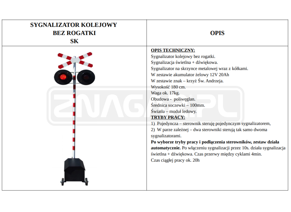- zasilanie 12 V (w zestawie akumulator żelowy 12V 20Ah),