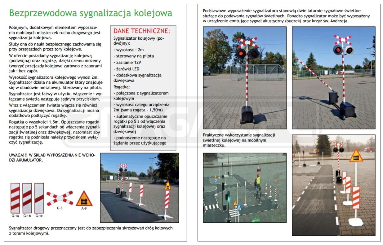 Mobilne miasto ruchu drogowego – stanowi pomoc dydaktyczną przy nauce przepisów ruchu drogowego i zasad poprawnego zachowania się uczestników ruchu na drodze. Świetnie sprawdza się przy szkoleniu młodych rowerzystów, dzieci w wieku szkolnym, jak i przedszkolnym.