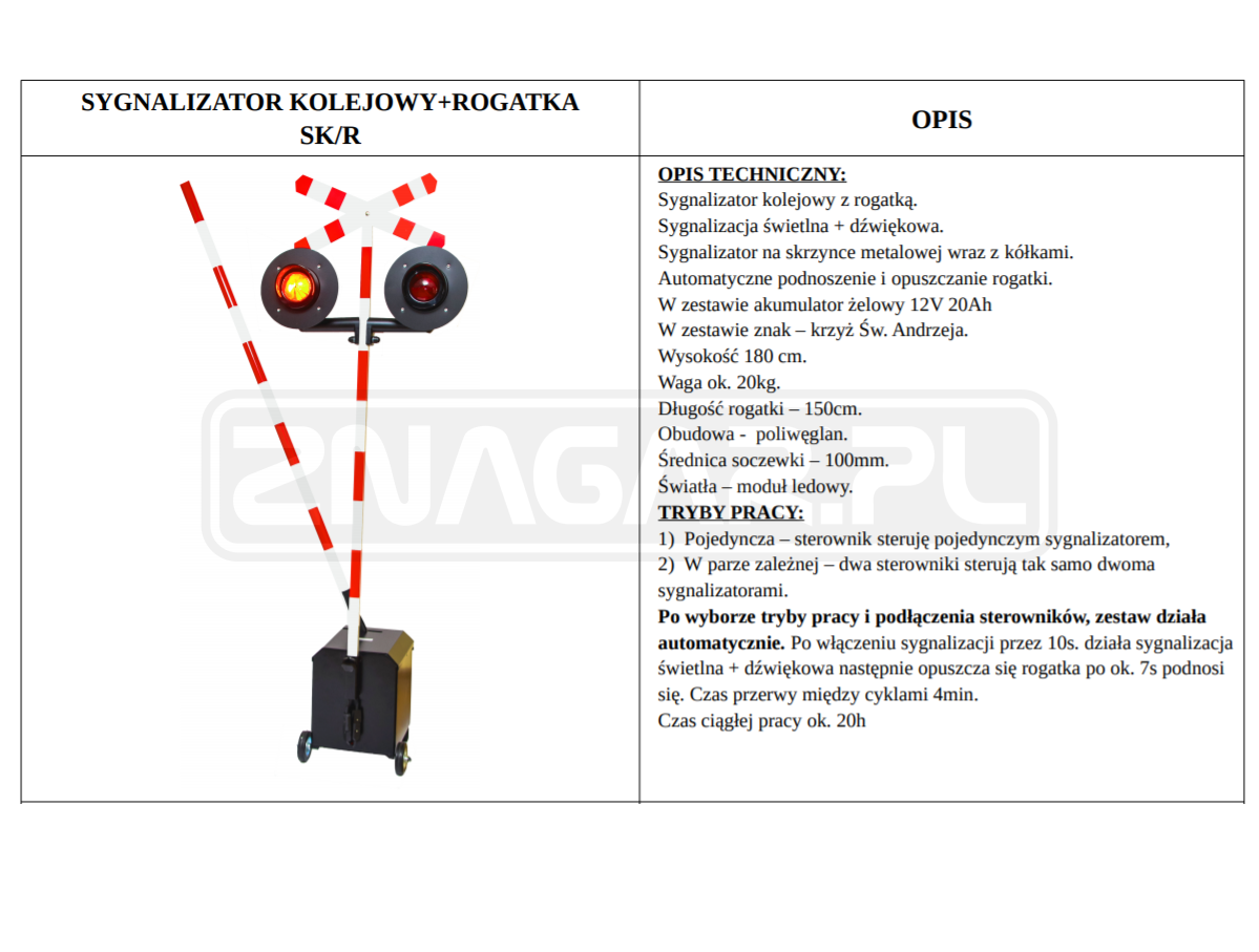 - rogatka jest połączona z sygnalizatorem - działa automatycznie razem z sygnalizatorem.