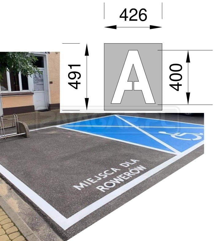 Wymiary: całkowity szablon 430x490mm, wysokość piktogramu 400mm