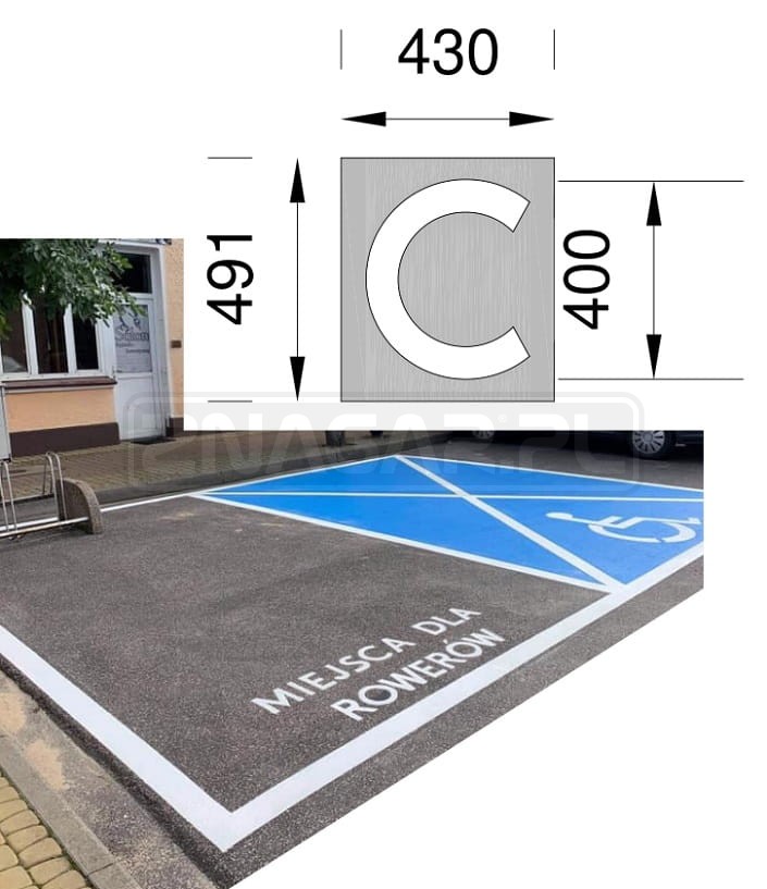 Wymiary: całkowity szablon 430x490mm, wysokość piktogramu 400mm