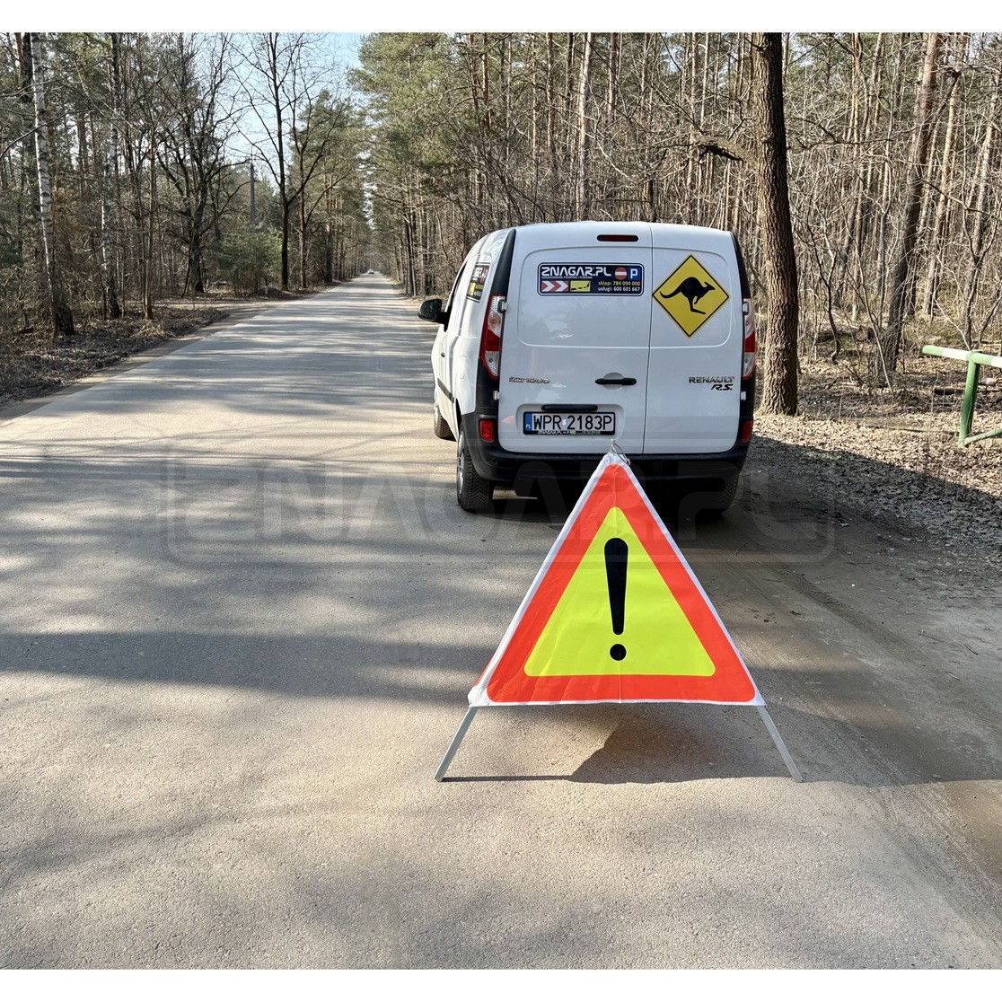 Trójkątny znak rozkładany “Uwaga niebezpieczeństwo” to ostrzegawczy znak do zastosowań drogowych i placów budowy. Idealny do tymczasowych prac drogowych, wypadków, incydentów drogowych, objazdów i stref roboczych. Wykonany na ocynkowanym stelażu bardzo mocnej konstrukcji z rozkładaną powłoką odporną na warunki atmosferyczne. Niezwykle jaskrawe kolory fluorescencyjne powodują, że ten przenośny znak jest bardzo dobrze widzialny na drodze i stanowi dobre zabezpieczenie prac w ruchu drogowym.