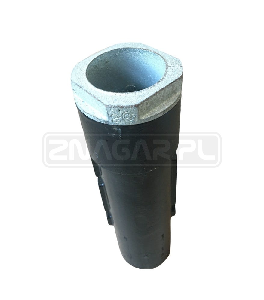 Tuleja żeliwna, skręcana, do osadzenia słupka znaku drogowego.