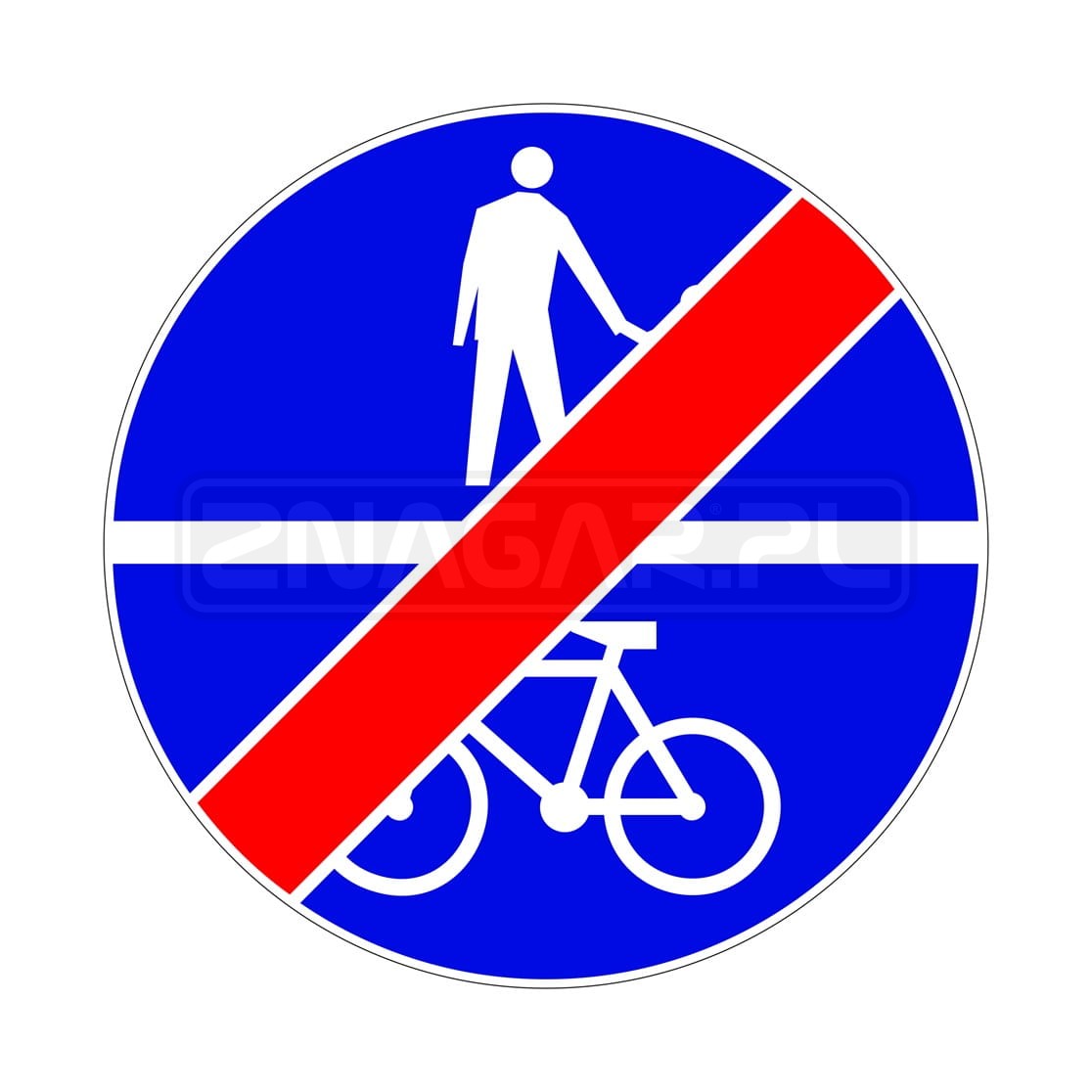 Znak C-13a/16a Koniec drogi dla pieszych i rowerów, podział poziomy - 1000 mm, II gen.